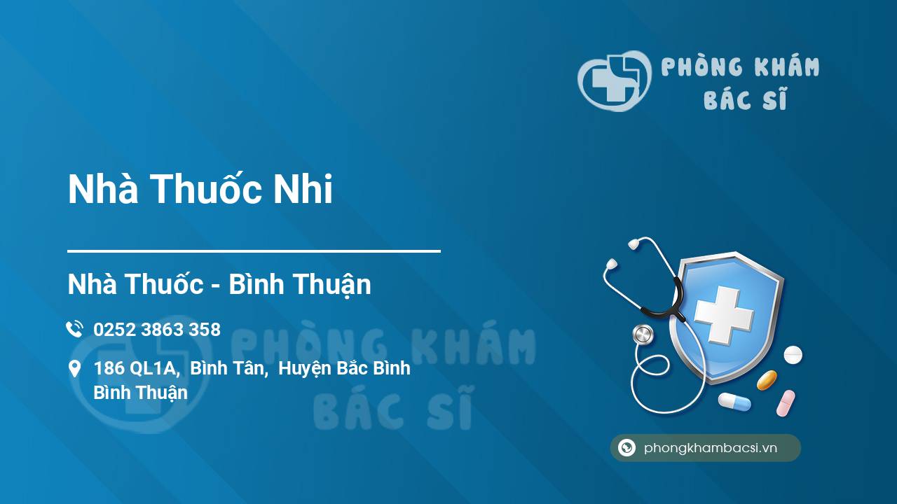 Nhà Thuốc Nhi là Hiệu thuốc tại Bình Thuận, có địa chỉ tại 186 QL1A, Bình Tân, Huyện Bắc Bình, Bình Thuận.